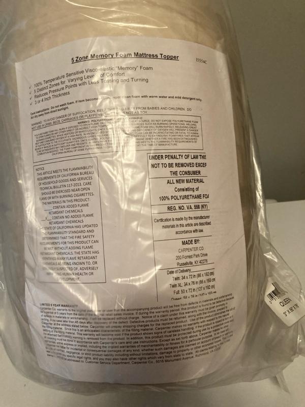 5 Zone 3" Memory Foam Mattress Topper, Twin
