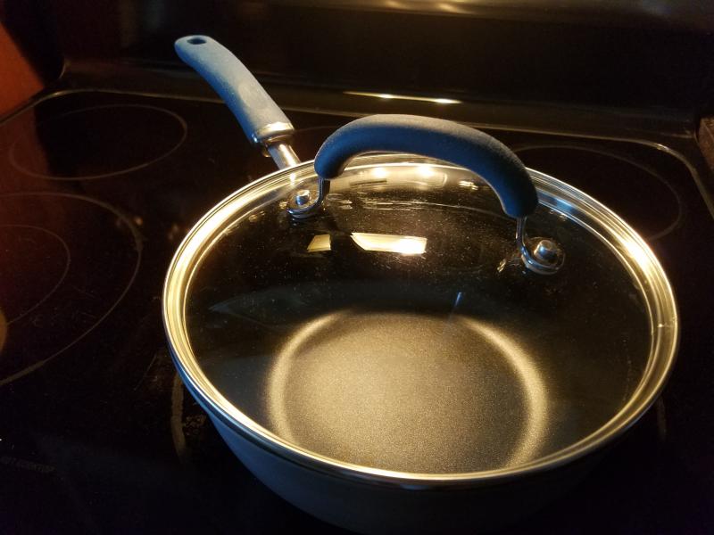 I love this pan! I have it in red and it’s a nice pop of color in my kitchen. It’s a great size for hard boiling eggs for egg salad, pasta for casseroles and large batches of quinoa for multiple meals. It heats evenly and quickly.